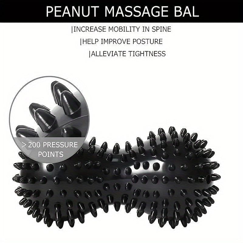 This ball is perfect for training purposes, aiding in enhancing grip strength and muscle flexibility, thus improving your fitness regimen. It is designed for both men and women, making it suitable for individuals of all genders and fitness levels. Its small size enables convenient portability, ensuring relaxation on-the-go. PEANUT MASSAGE BALL: ENHANCE SPINAL MOBILITY, PROMOTE BETTER POSTURE, RELIEVE TENSION.