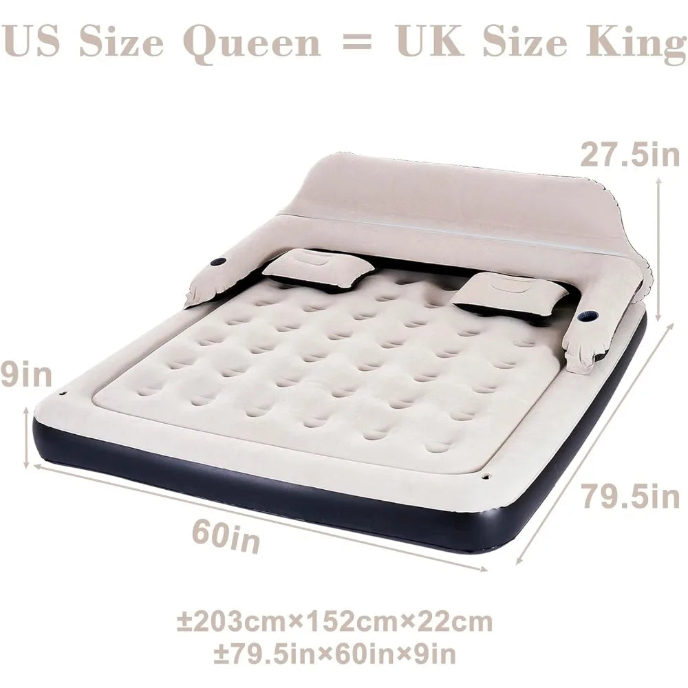 Queen Size Air Mattress Sofa Bed a ɛwɔ Headboard ne Pillow, Inflatable mpa a wɔde ma abɔnten anadwo