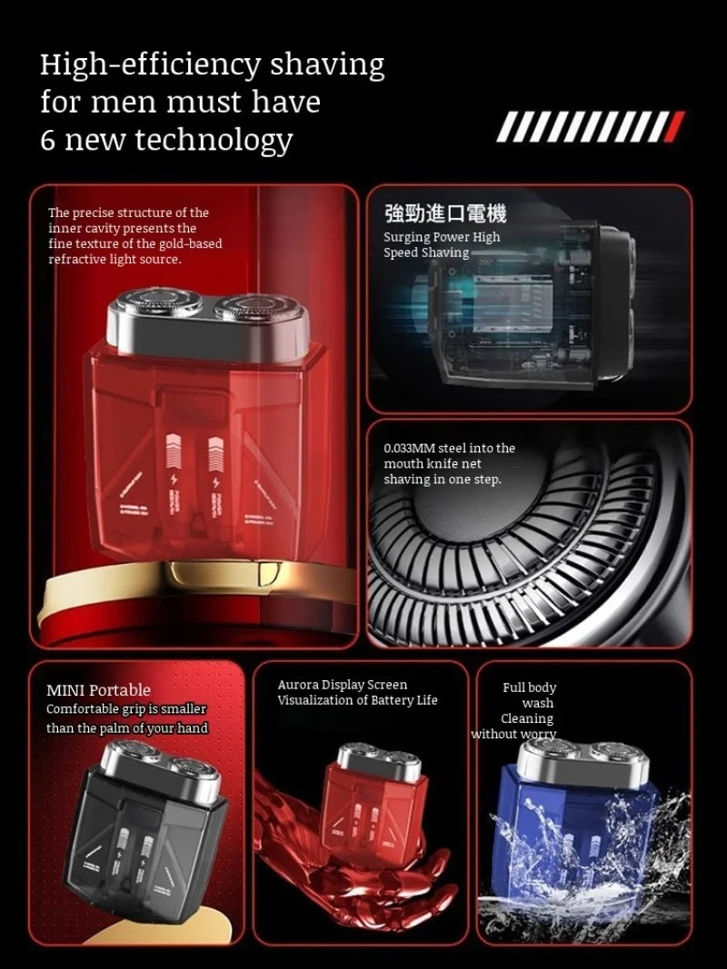 Men's portable magnetic double head electric shaver TYPE-C Charging Waterproof Digital Wet Dry Double Shaving Shaver